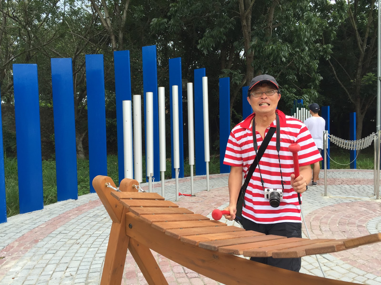 但地道有部分低矮狹窄,我愈走愈有窒息感,老公還說刺激,叫兒子以後帶妹來,如果妹害怕,此時男生就顯得強壯有擔當,什麼歪理?戶外音樂廣場有各式鐵琴、木琴、和鼓